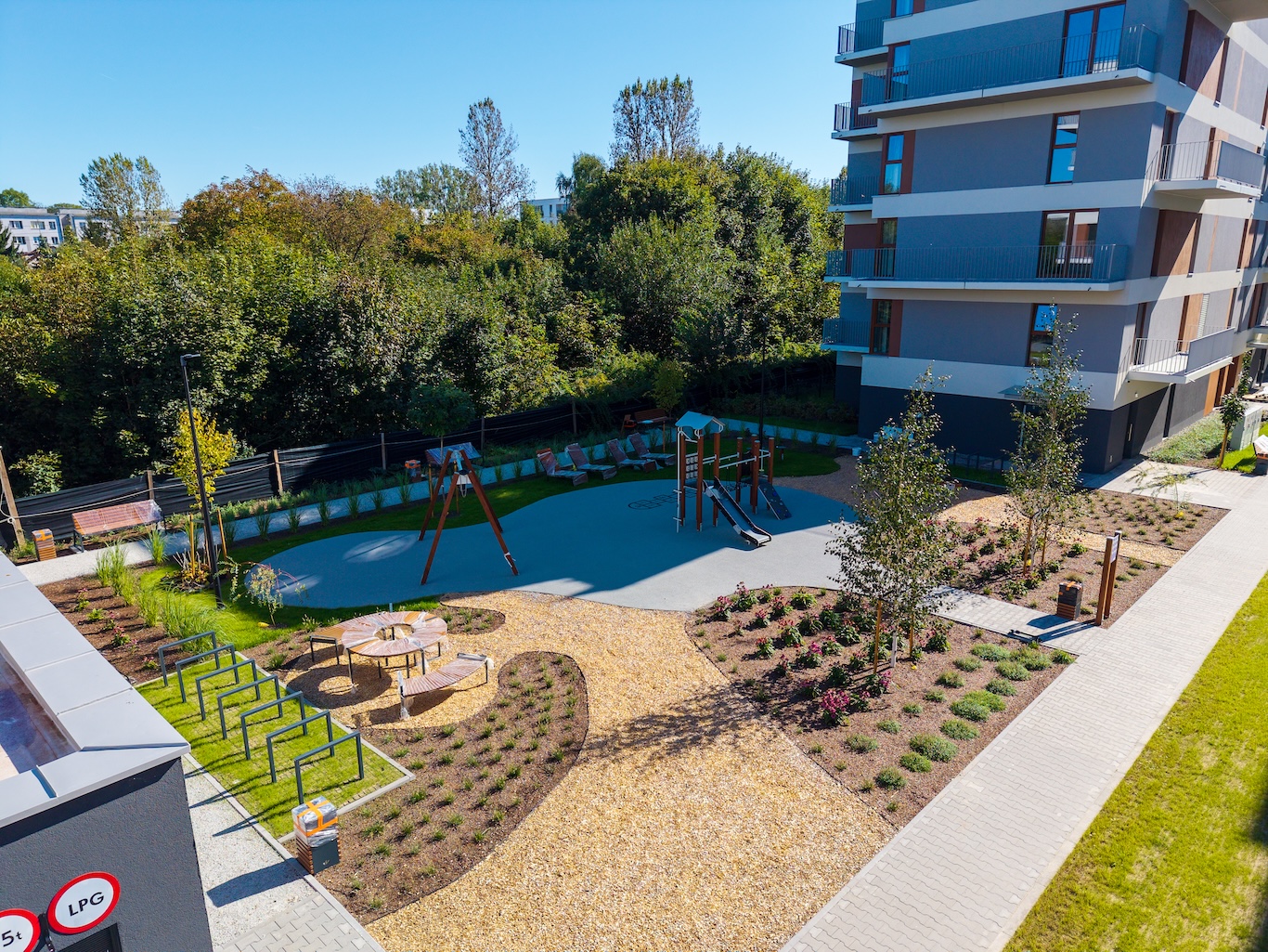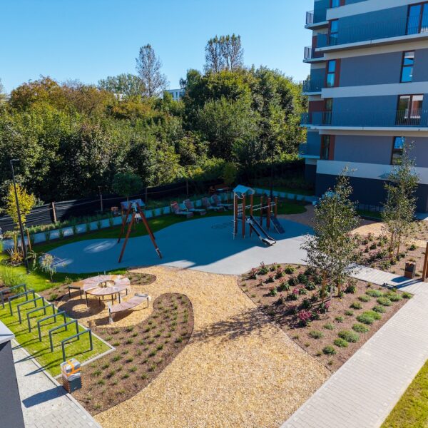 144 mieszkania z możliwością połączenia ich w większe apartamenty, windy, ponad 170 miejsc parkingowych pod budynkami z piwnicą i komórkami, miejsca postojowe zewnętrzne, plac zabaw dla dzieci, lokale usługowe, infrastruktura przyjazna osobom niepełnosprawnym – to cechy nowoczesnej inwestycji.